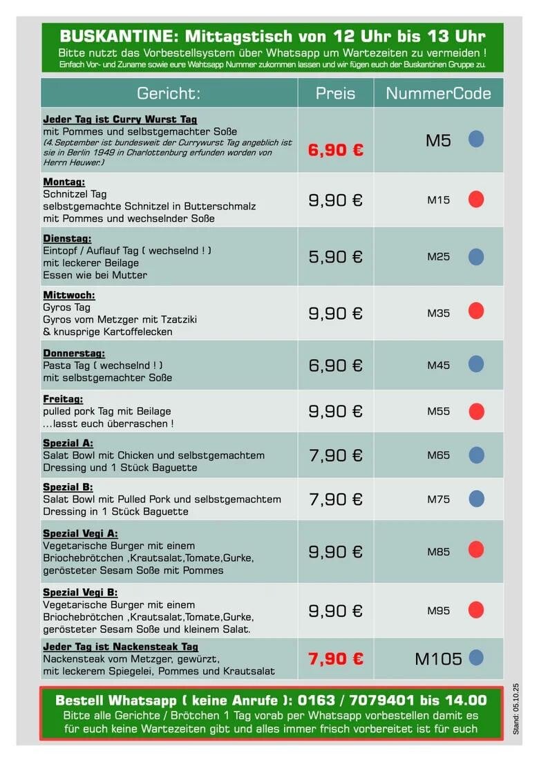 Wir bieten euch leckeres Frühstück, leichtes Mittagessen oder saftiges BBQ-Catering. Alles lokal, immer frisch & persönlich auf dich abgestimmt. Dafür stehe ich und mein Team und wir freuen uns auf euch und eure kulinarischen Wünsche zu erfüllen ! Wir freuen uns auf euch. Lieben Gruß Sandra von der BUSKANTINE Dortmund.